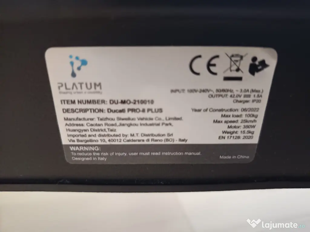 Trotineta electrica Ducati Pro-II Plus, 350W, Autonomie 25 km, Negru Zero kilometri cu display aplicație pe telefon este nouă neutilizată cumpărată din italia plus cadou gentuța unde se pune încărcătorul de la trotinetă cu ridicarea de la domiciliu micro 21 Galați sau livrare prin la jumate .roViteză (km/h)