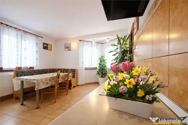 - bucatarie cu spatiu de dinning, un dormitor gen suita pentru familie cu copii, o camera transformata in sala de fitness, baie , camera tehnica cu centrala termica Viesmann de 60 kw, pivnita