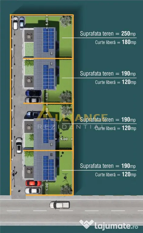 Teren aferent : 190 mp (120 mp liber) .