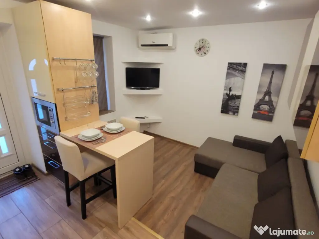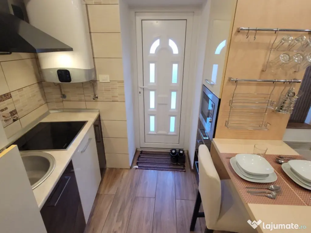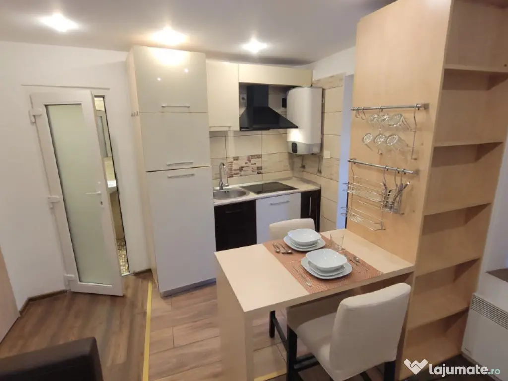 utilitati incluse in pret garsonieră în centrul Bucureștiului, zona Mântuleasa - Liceu Matei Basarab, zonă liniștită de case, renovată și utilată complet, cu spațiu în curte. În Vilă mai sunt încă 3 locuințe. Locuința se află la Parter într-o Vilă interbelică cu 1 etaj, curte la comun de 300 mp cu zonă verde. Suprafața este de 19 mp, camera de 14 mp, baie de 4 mp, este curata si cu toate utilitățile incluse în prețul închirierii, chiriașul nu mai are de plătit nimic în plus. Bucătăria este open space, plita pe inducție, frigider incorporat, cuptor microunde incorporat, hota, mașină de spălat incorporabilă, camera are canapea extensibilă de 2 persoane, aer condiționat și tv. Baie cu cabina de duș si geam, încălzire cu convectoare electrice și apă caldă cu boiler instant. Nu există centrală pe gaz. Închirierea doar pe minim 1 an și garanție 2 luni în avans. Locuri de parcare la liber pe stradă, fiind zonă de case sunt multe disponibile. Nu se acceptă animale și chiriași din afara UE. Confort: 2 Tip imobil: Casă/Vilă Comision cumpărător: 50%