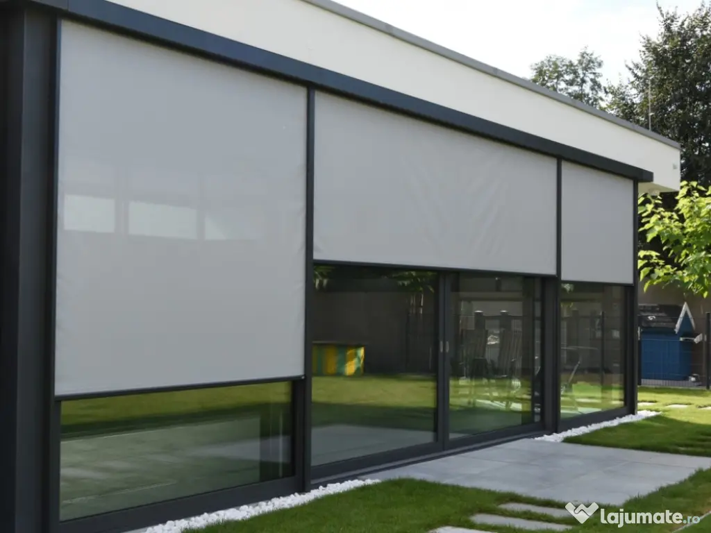 uși de garaj tip rulou sau secționale, rulouri exterioare, ZIP screen-uri, structuri metalice sudate și pergole din aluminiu, realizate la comandă.