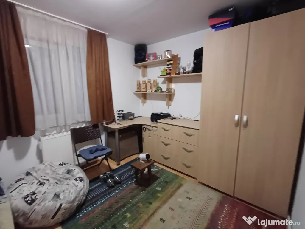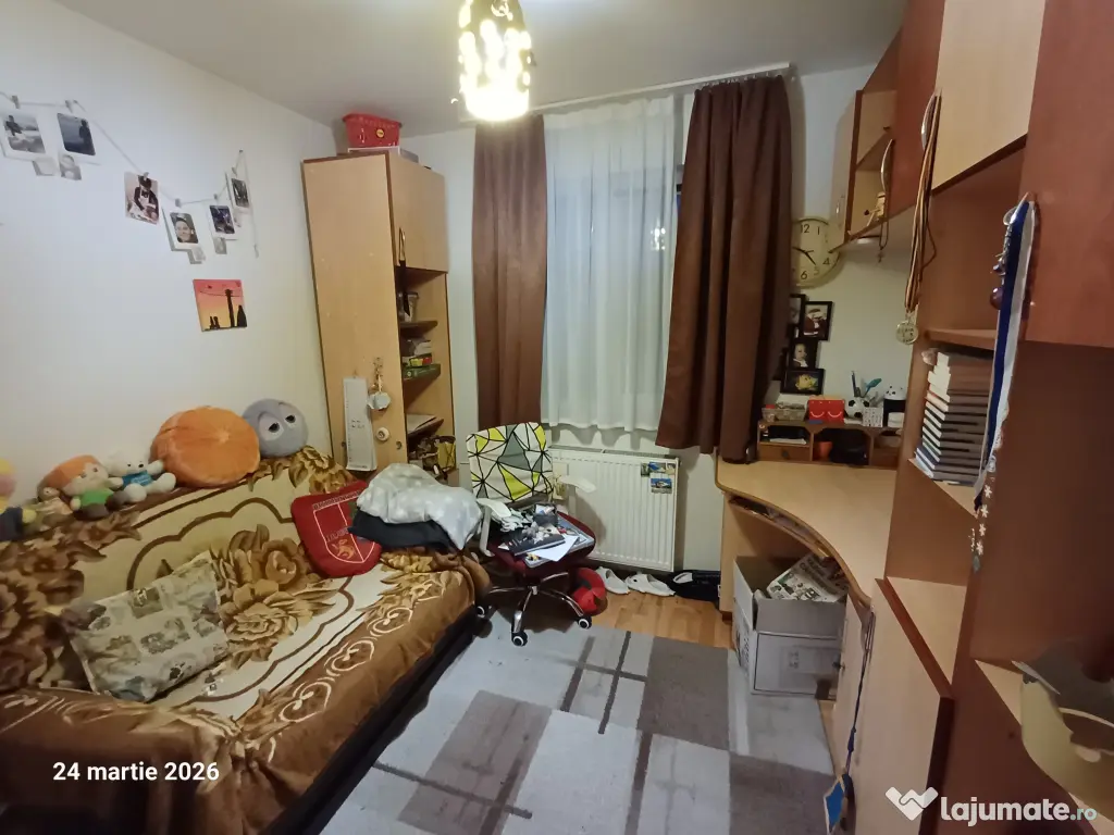 Vând apartament 3 camere în Dâmbul Pietros, zonă liniștită, aproape de magazine, școală, piață. Are 3 camere, complet mobilat, după cum se vede în poze, cu mobilă făcută la comandă. Este la etajul 4/4, dar are aer condiționat. Baia are cabină de duș walk-in, geam de aerisire. Sunt 3 camere semidecomandate. Are și pivniță destul de spațioasă.