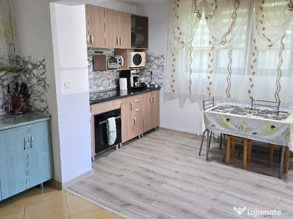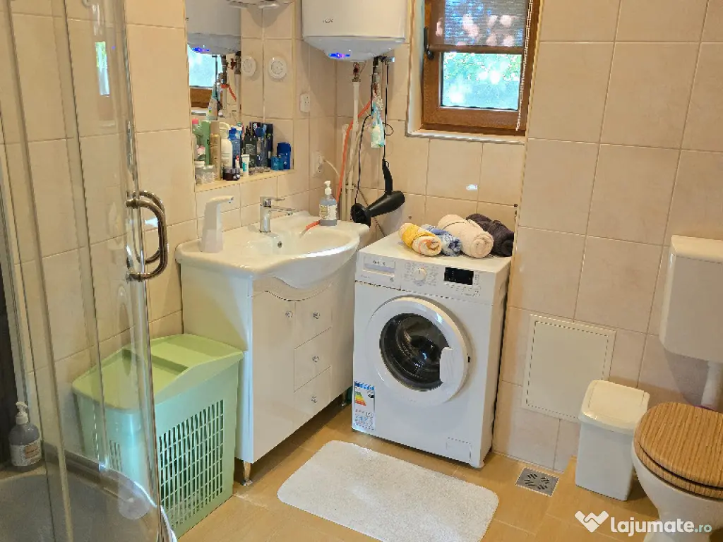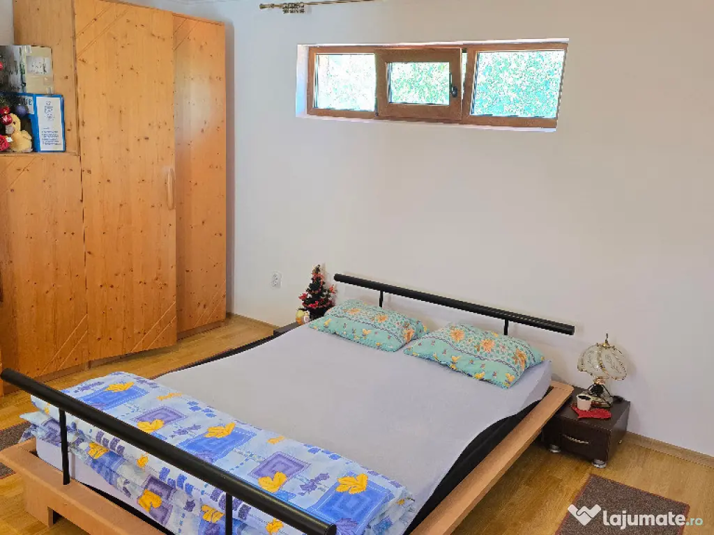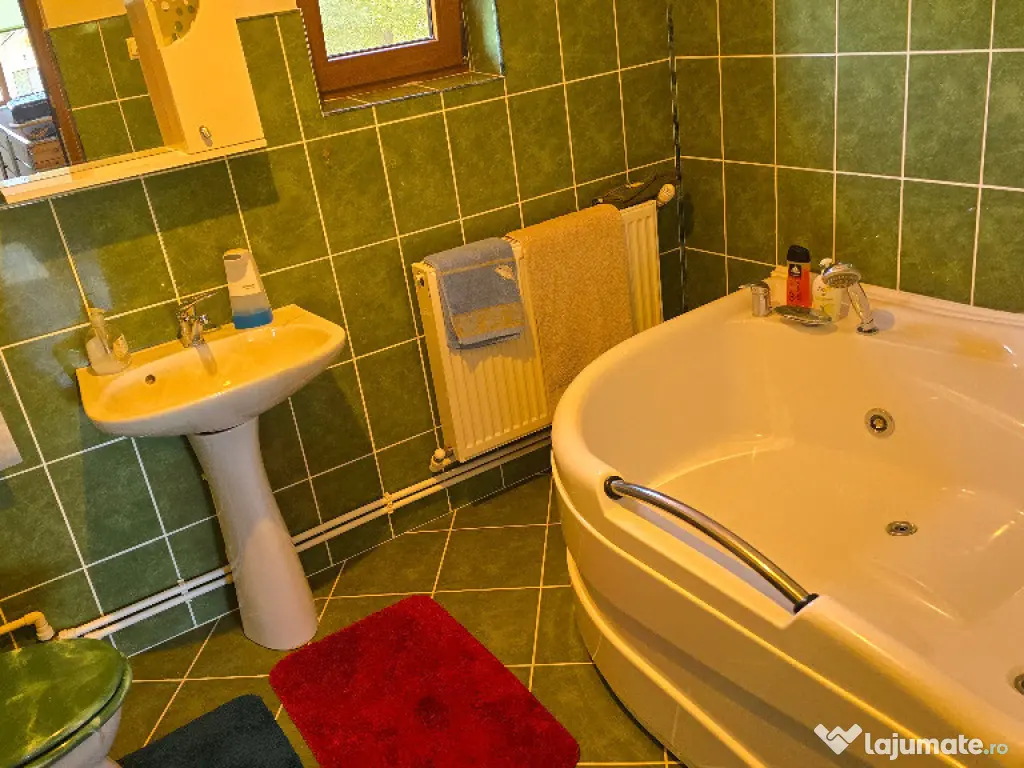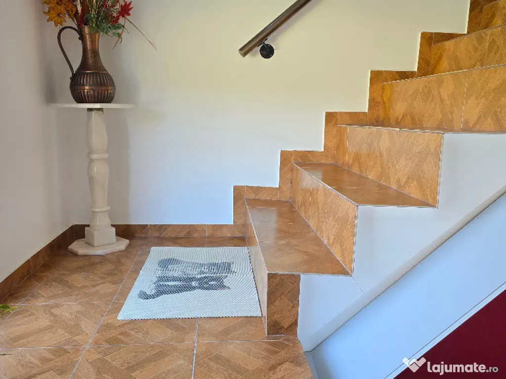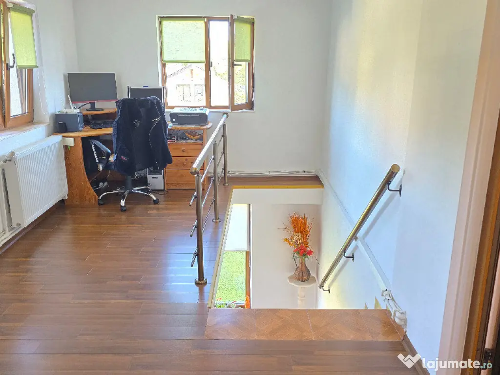 Vand casa in Deva, zona Zavoi, P+E, constructie din BCA si boltari, izolata exterior, renovata integral si contructie etaj in anul 2011 (primul nivel a fost construit in anul 1989), acoperita cu pod si tigla ceramica, suprafata construita 262 mp, amprenta la sol de 147 mp. suprafata totala de teren 1054 mp, deschidere la strada de 22 metri liniari, acces auto in curte, amenajata modern, incalzire cu centrala termica pe lemne cu pufar si boiler pt. apa calda de la centrala si electric, semineu, tamplarie PVC cu geam termopan normal si tripan, usi interioare din PVC, gresie, faianta, parchet. La parter este compusa din: living, bucatarie, dormitor, baie, camera tehnica, camara, dresing, 2 terase si garaj deschis pentru 2 masini. La etaj din: 3 dormitoare, birou, baie si hol. Curtea este ingradita, partial pavată, dispune de magazie de lemne, padoc pentru caine si gazon. Proprietatea se vinde partial mobilată. Utilitati: apa, canalizare, curent, internet trase in casa si gazul la poarta. Pret: 205 000 euro neg. Tel: 0724 293226. Mai multe poze VIDEO si detalii pe www.apartamentedeva.ro sau la Agentia imobiliara Ovidiu Deva.