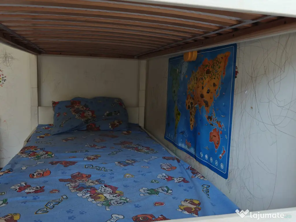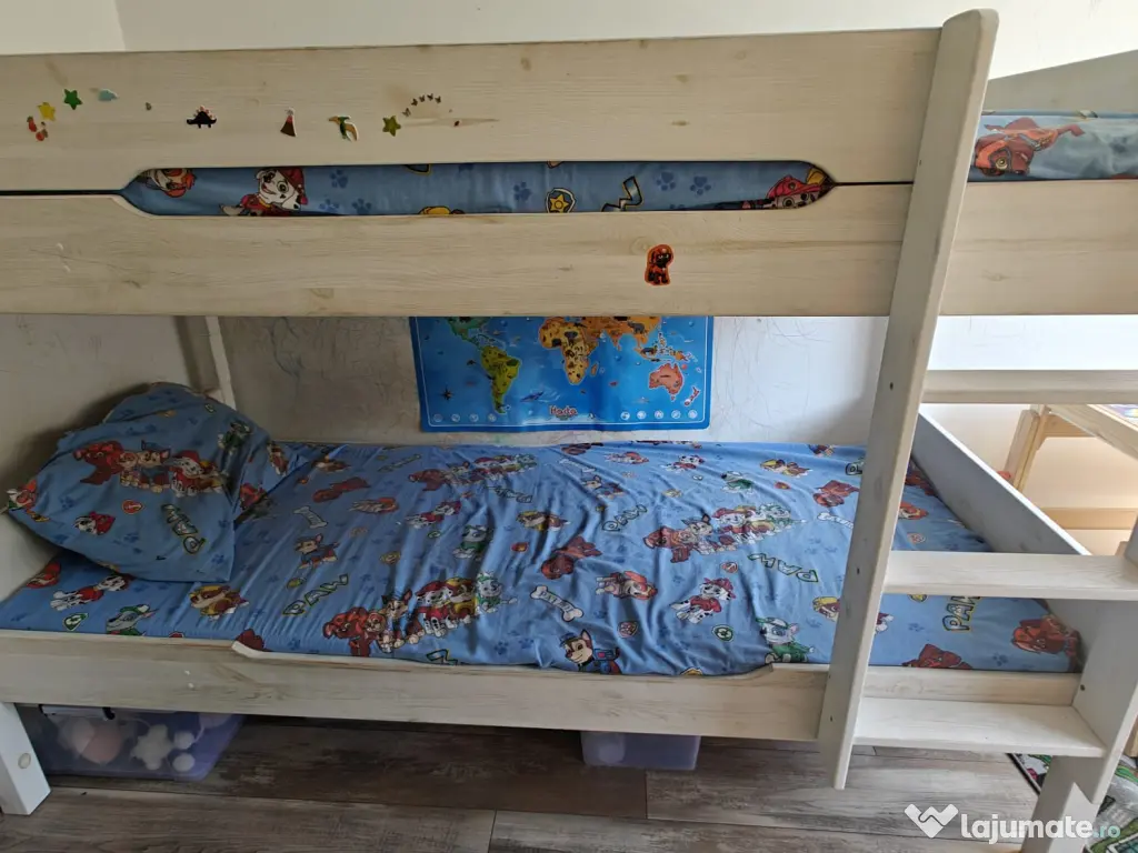 Vând pat supraetajat, cu două saltele.