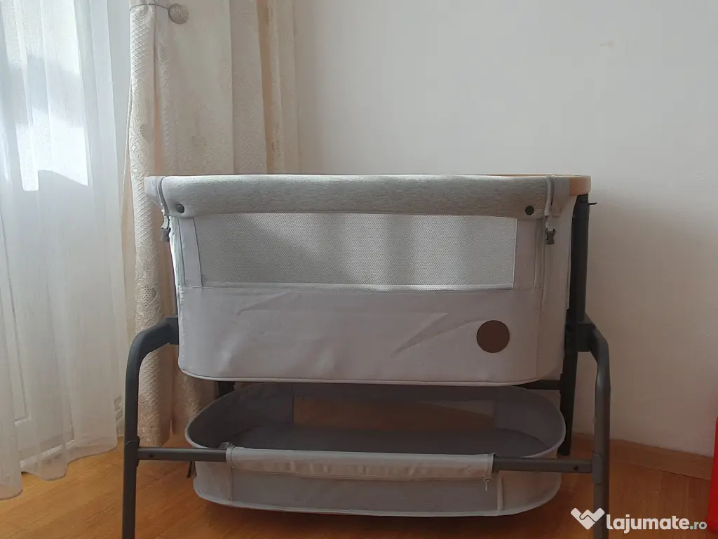 - Poate fi folosit ca pătuț separat sau atașat la patul părinților, având o funcție de glisare laterală pentru un acces ușor.