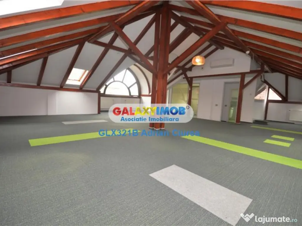 Fiecare nivel ofera in medie (cca. 120 mp/etaj), cuprinzand 14 camere: birouri private, birouri open space (la mansarda 107 mp open space cu zona vitrata si tamplarie din lemn aparenta), 6 grupuri sanitare, 2 bucatarii, camere pentru depozitare, la demisol exista si o camera tehnica pentru server cu cabalaj pentru intreg imobilul, 2 balcoane si 1 terasa, garaj 20mp, pivnita 15mp.