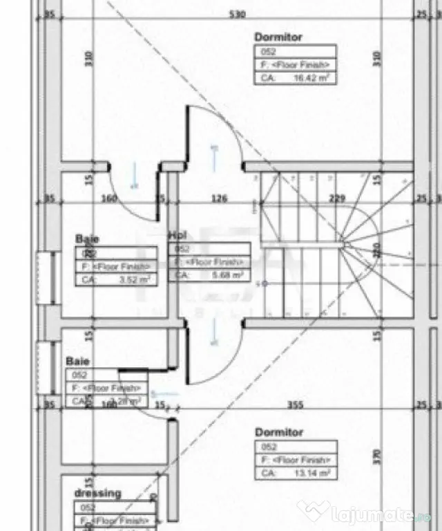 Configuratie: 2 dormitoare living, bucatarie, 3 bai, hol, spatiu de depozitare , dressing si curte.