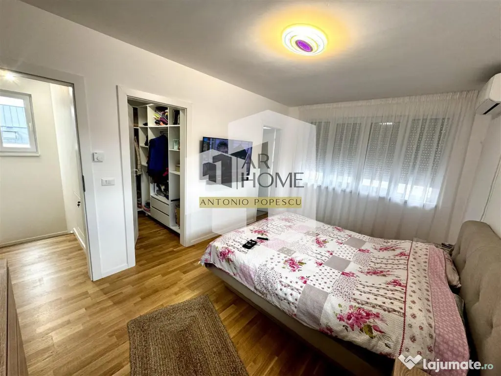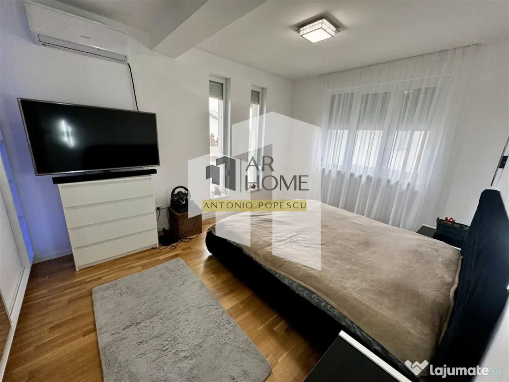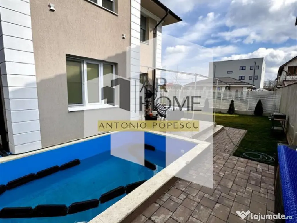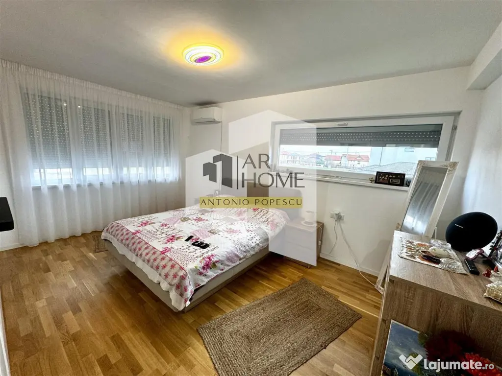 Vanzare casa 4 camere, in Ploiesti, zona Albert. Imobilul se afla intr-o zona nou construita avand ca vecinatati Mall Shopping City, Kaufland, gradinita, after school, restaurante, mijloc de transport in comun etc. Este construit in anul 2023 cu fundatie de beton armat izolata cu polistiren extrudat de 10 cm si hidroizolata, structura pe cadre de beton, peretii din caramida Porotherm de 25 cm, placa de beton pe fiecare nivel, acoperis din tabla tip Lindab izolat cu vata bazaltica, tencuit la interior si izolat termic la exterior cu polistiren de 10 cm EPS 80. Amprenta casei este de 93 mp, suprafata construita de 174.31 mp, suprafata utila 126 mp plus terase in suprafata de 14 mp coplartimentata astfel: Parter: terasa intrare (2.76 mp), hol (12.53 mp), living (29.65 mp),, bucatarie (12.16 mp), terasa (11.59 mp), baie (4.61 mp) si casa scarii; Etaj: hol (9.53 mp), dormitor matrimonial (15.28 mp) cu dressing (3.01 mp) si baie proprie (4.41 mp), dormitor 2 (14.96 mp), dormitor 3 (12.16 mp) si baie (3.75 mp); Terenul are o suprafata de 378 mp, deschiderea de 18 ml. Dotari exterioare: teren imprejmuit cu gard de beton si metal, alei pietonale si auto betonate si pavate cu dale (Semmerlock), gazon, sistem de irigatie automatizat, piscina, magazie exterioara din lemn, terasa placata cu travertin, rulouri exterioare din PVC, tuya etc. Dotari interioare: usa intrare PVC Salamander, usi interioare celulare MDF (Porta Doors), tamplarie PVC Salamander cu geam tripan, centrala termica (Viessmann), distribuitor de caldura pe fiecare nivel, incalzire in pardoseala pe fiecare nivel, gresie si faianta (Delta Studio), parchet din lemn stratificat, obiecte sanitare (Delta Studio si Romstal), scara de beton placata cu lemn stratificat, vopsea lavabila etc. Utilitati: apa, gaz, canalizare, lumina etc. Se vinde partial mobilata si utilata la pretul de 294900 EURO. Număr Băi: 3 Posibilitate parcare: Da Nr. locuri parcare: 2 Apă Canalizare Gaz