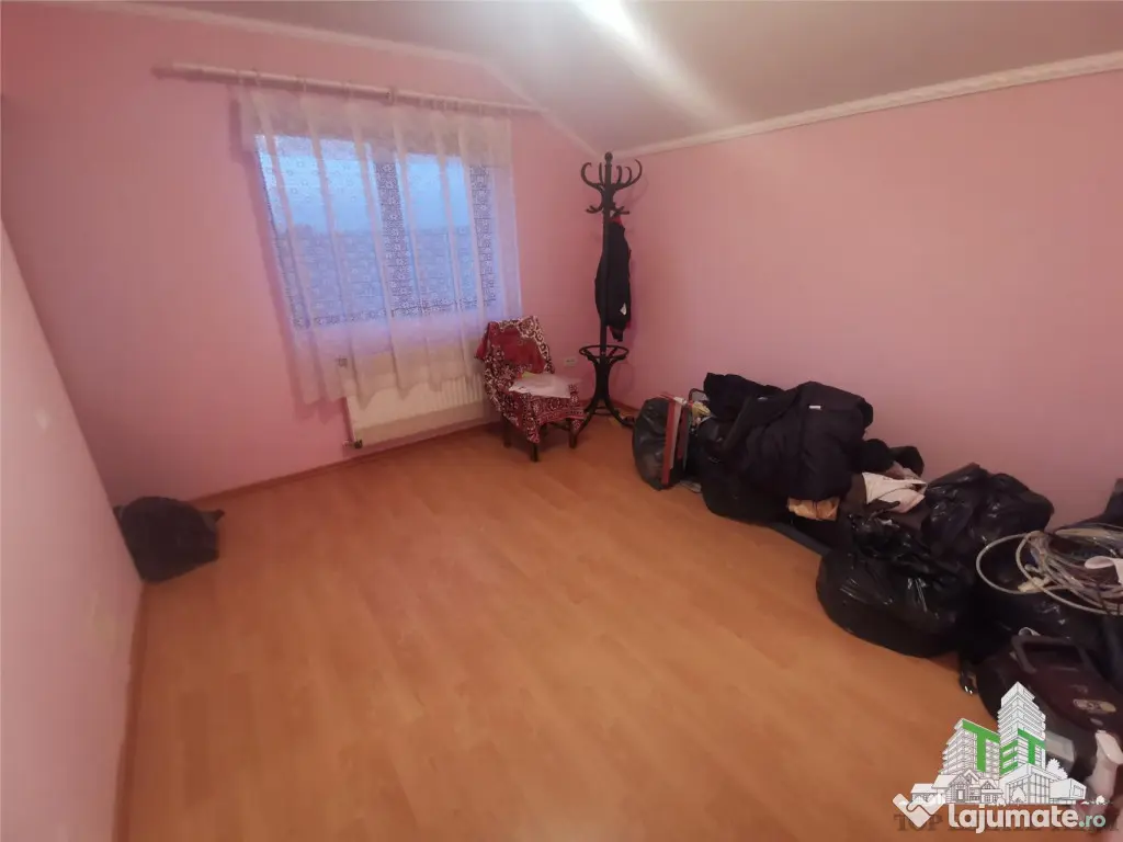 Curte amenajata cochet cu flori, tuia, brazi, gradina de zarzavaturi, alei betonate de acces in casa. Gard de beton si fier cu fundatie la adancime. Vedere panoramica neobturata asupra imprejurimilor (apus superb) Regim inaltime: Parter Etaj mansardat (camere normale) Parter: Living bucatarie partial inchisa, 1 dormitor, 1 baie, terasa acoperita cu beci pe toata lungimea, veranda Etaj: 3 dormitoare, 1 baie, 1 dressing, 2 balcoane. Suprafata utila 120mp, an constructie 2009. Utilitati: apa, curent, gaze, fosa betonata (se schimba la cativa ani), cablu TV, internet, centrala termica pe gaz Strada asfaltata iluminata noaptea cu dubla deschidere.