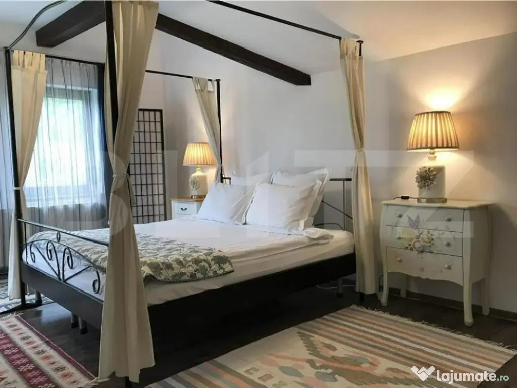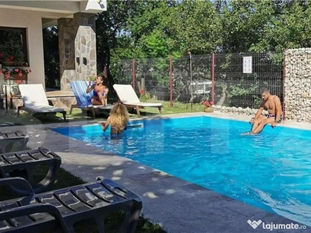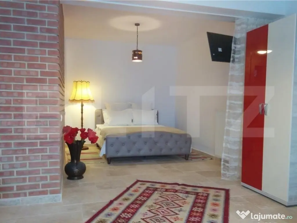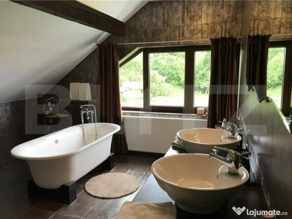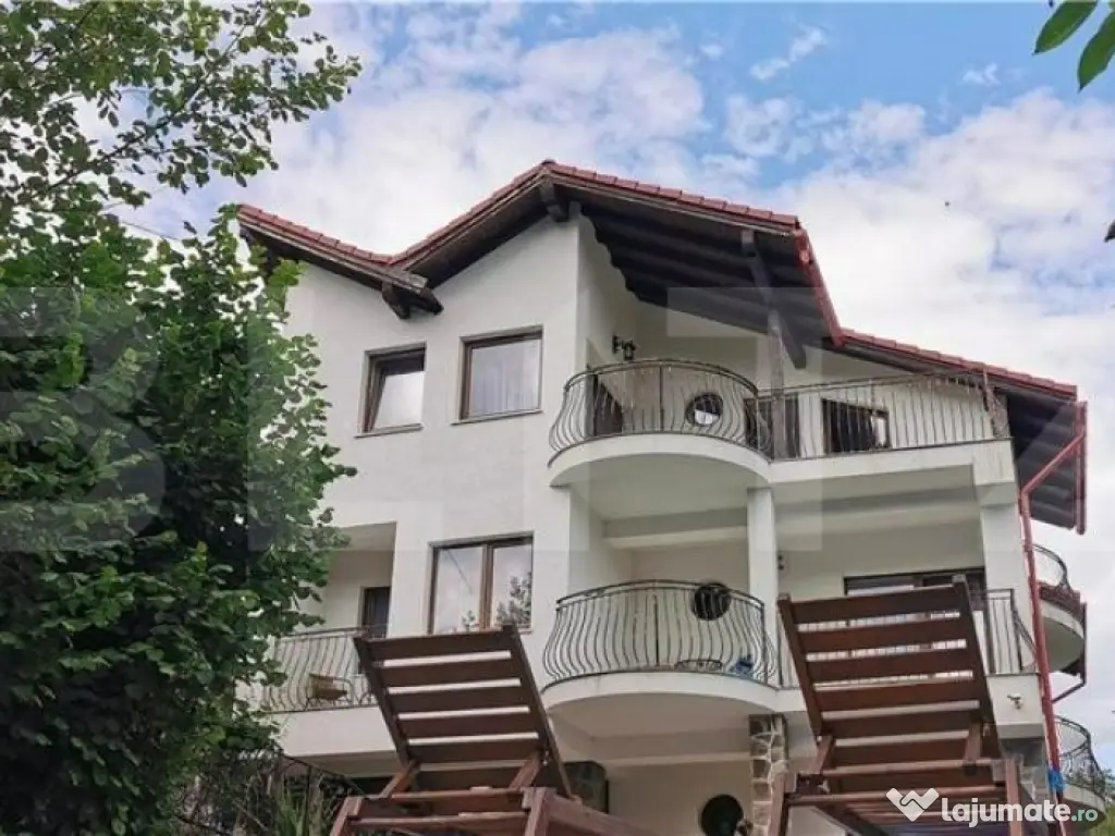 Blitz va propune spre vanzare o vila amplasata la 3 minute de centrul orasului si 5 minute de Poiana Brasov. Vila este constructie noua, cu finisaje de lux, orientate spre sud cu o perspectiva senzationala asupra centrului vechi al Brasovului, cu o arhitectura deosebita. Este dispusa pe p+e+m., astfel: - parterul dispune de living, bucatarie, baie,, camera centralei si apartament doua camere - etajul 1 dispune de 4 camere cu bai proprii si terase iar ultimul etaj un penthouse deosebit cu living stil american cu bucatarie, 2 dormitoare generoase, 2 bai si doua terase spatioase. Suprafata utila este de 420 mp, iar gradina 575 mp cu piscine descoperita. Pensiunea se vinde coplet mobilata si dotata., numar etaj: P+1+M, numar camere: 8, numar loc de parcare: 4, numar bai: 7, suprafata utila: 420, suprafata totala: 600, suprafata construita: 420, Anul constructiei: 2011. Cod ofertă / ID BLITZ: P4491 Id intern: P4491 Număr niveluri imobil: 2 Număr Băi: 7 Nr. locuri parcare: 3