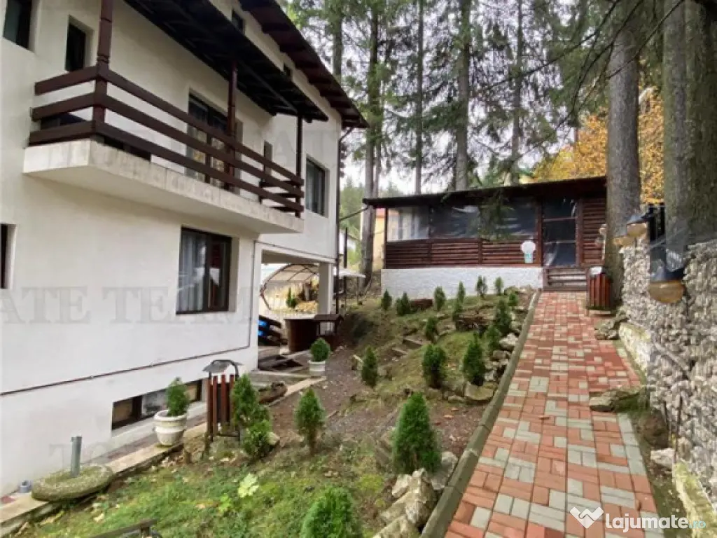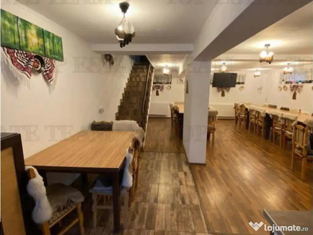 Excelenta prin experienta! Oportunitate rara in una dintre cele mai apreciate zone din Romania, un imobil elegant si pregatit pentru exploatare imediata. Vila situata in apropierea partiei Clabucet,cu o suprafata generoasa de 538 mp, impunatoare si loc ideal atat pentru rezidenta de lux cat si pentru investitie turistica foarte profitabila. Detalii si dotari premium,cu 15 camere spatioase, fiecare cu baie proprie si geam natural de aerisire, cu tv si internet de mare viteza, balcoane proprii, majoritatea cu privelisti montane. Bucatarie open- space de 35/40 mp, tip living,complet echipata, cu mese si scaune pentru 20/25 persoane, perfecta pentru grupuri, evenimente sau turisti. Vila e echipata cu centrala termica noua,boiler de rezerva de 1000 l, calorifere cu termostat. Construita in anul 2020,renovata in 2024,cu multiple materiale de calitate, are si o curte amenajata cu Ciubar si mese din lemn masiv , pentru10 persoane. detine in curte si 4 locuri de parcare. Are toate actele la zi,libera de sarcini,iar ca utilitati este completa,curent,apa,gaz, canalizare.Pret 450000 discutabil Număr Băi: 15 Posibilitate parcare: Da Nr. locuri parcare: 4 Apă Canalizare Gaz Subsol Demisol