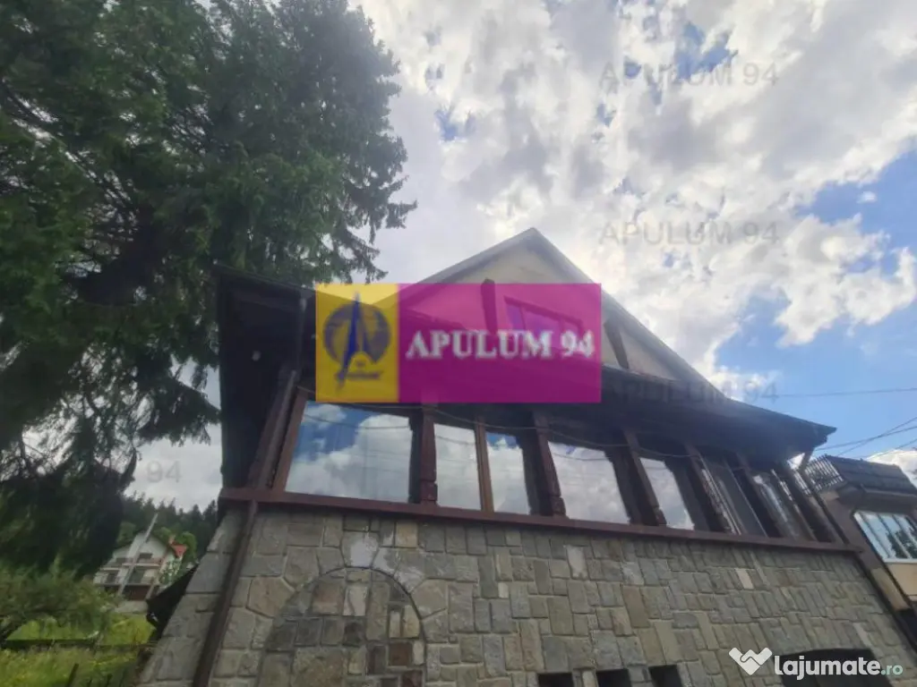 Vila este situata în orasul Busteni, in zona Zamora si a fost renovata in anul 1990. Constructia de tipul D+P+1, este din caramida, cu fundatie si plansee din beton. Incalzirea se face cu centrala termica pe gaze, dar si cu semineu pe lemne. Compartimentare: Demisol: - sauna - living - 2 dormitoare - baie Parter: - living - bucatarie - dormitor - camera depozitare - baie Etaj: - 4 dormitoare - 3 bai Exista posibilitate de extindere la mansarda. Număr niveluri imobil: mai mult de 12 Număr Băi: mai mult de 3 Posibilitate parcare: Da Nr. locuri parcare: 1 Curent Apă Gaz Încălzire Demisol