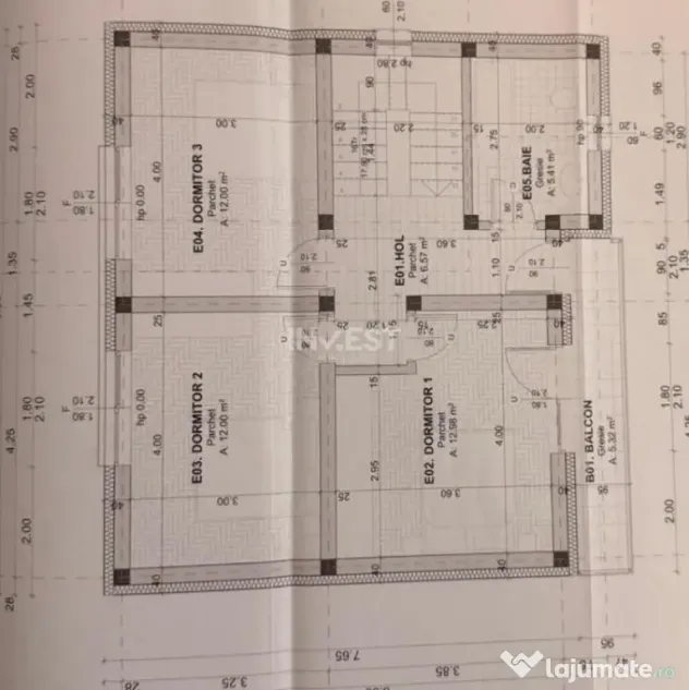 Etaj: hol, 3 dormitoare, balcon și grup sanitar;