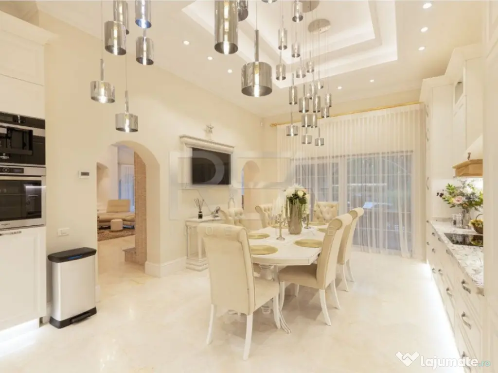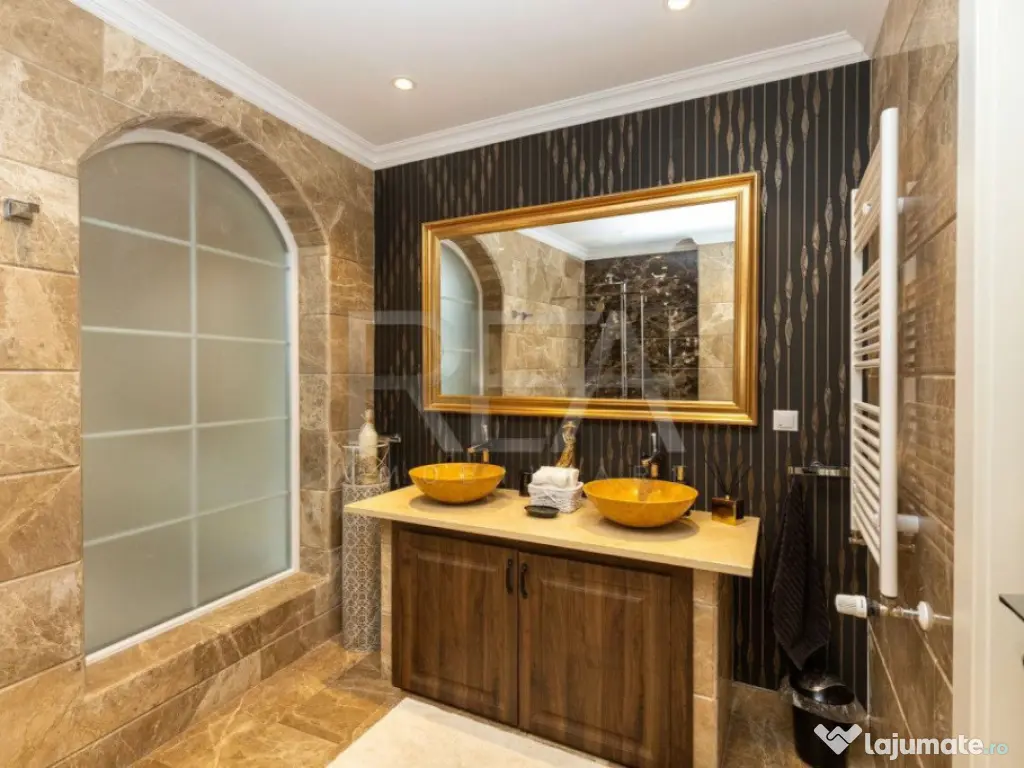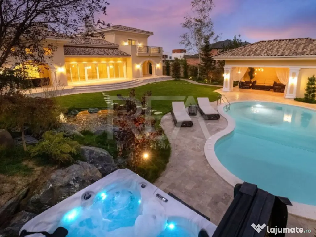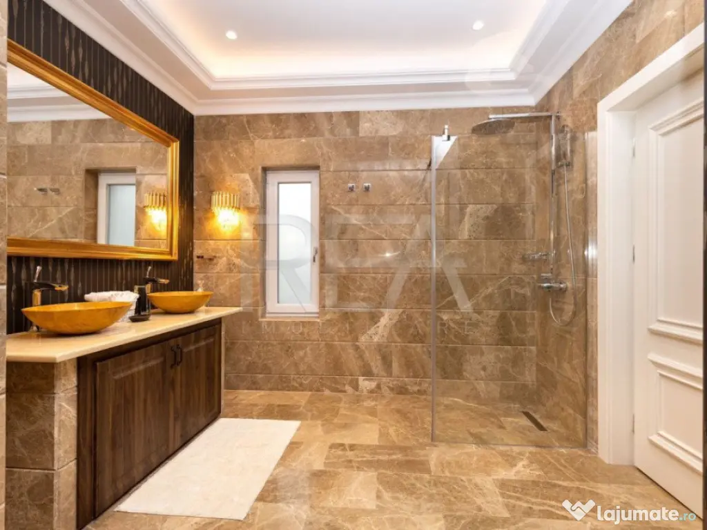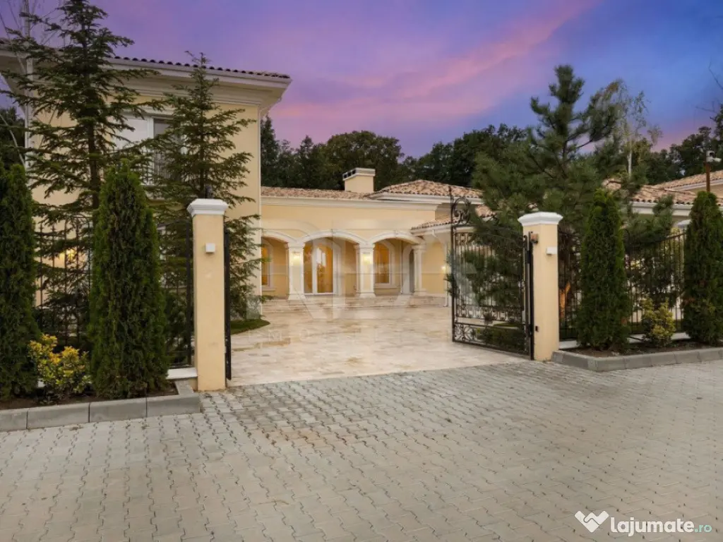 R.E.A. Imobiliare are placerea de a va prezenta spre vanzare o vila in stil mediteranean in zona langa padurea Băneasa, isi asteapta noii proprietari intr-un decor de poveste. Casa se remarca prin aspectul elegant si prin atentia la detalii cu care a fost construita. Finisajele sale, de inalta calitate, aduc un confort sporit, pus la dispozitie nu doar de amplul spatiu locativ, ci si de piscina exterioara, foisor, spatiile de parcare si curtea generoasa, amenajata de un peisagist. Exteriorul sau, cu acoperis din tigla ceramica si suprafete vitrate extrem de generoase, aminteste de vilele clasice toscane, sporindu-i farmecul. Vila dispune de toate utilitatile necesare unui nivel de confort sporit, beneficiind de curent trifazic, gaz, apa, canalizare, cat si de centrala termica, incalzire in pardoseala, camere video, sistem de alarma, telecomanda poarta acces auto. In jurul proprietatii se gaseste o frumoasa padure si alte vile. Zona nu este aglomerata, ci ofera tot confortul necesar traiului linistit al unei familii care nu doreste sa locuiasca in mijlocul agitatiei citadine. Este locul in care copiii dvs. pot creste in voie, in care puteti organiza adunari de familie, petreceri cu prietenii, langa piscina, ori unde puteti organiza propriul spatiu de lucru, acasa. Aceasta casa va pune la dispozitie tot necesarul realizarii acestor dorinte, singura dvs. limitare fiind propria imaginatie. Informatiile tehnice au caracter orientativ, acestea fiind preluate de la proprietari, pentru a va face o idee mai clara in privinta Vilei, va invit la vizionare. Proprietatea a fost verificata si este valabila, confirmarea fiind facuta, atat timp cat este la promovare. Pentru mai multe detalii si vizionari, ne puteti contacta telefonic, specificand codul de identificare P7477! Cu deosebita consideratie, Echipa R.E.A Imobiliare. Your comfort it's our Job. Id intern: P7477 Număr niveluri imobil: 1 Număr Băi: 3 Nr. locuri parcare: 2 Curent Apă Canalizare Gaz Sistem irigaţie Climă