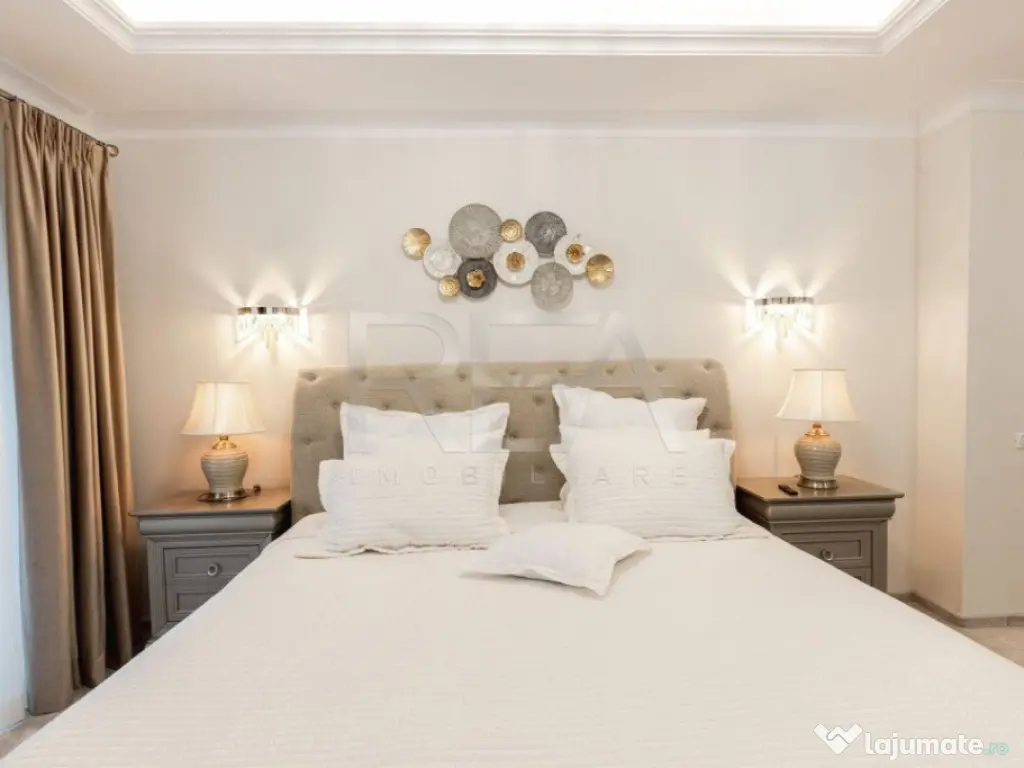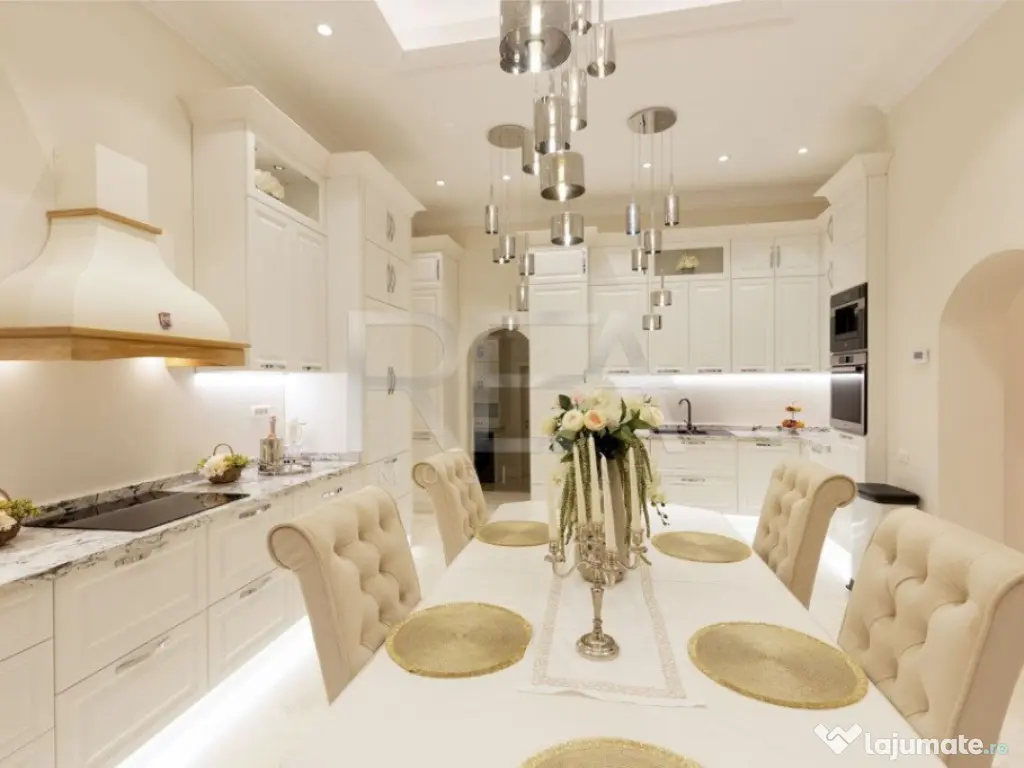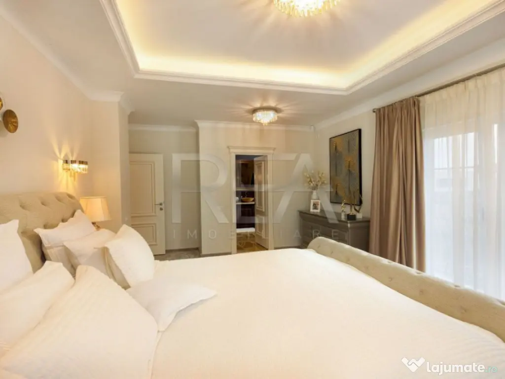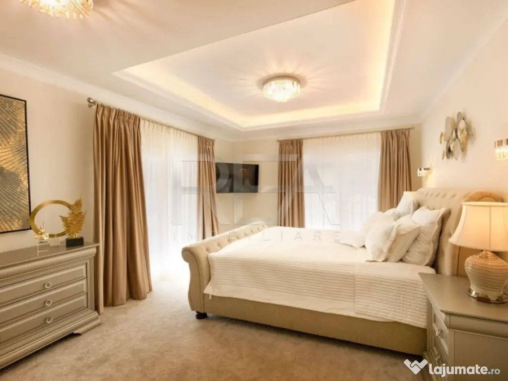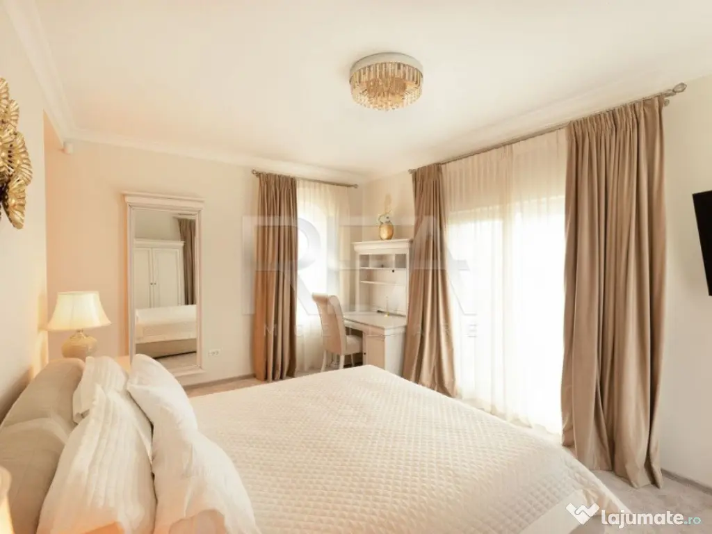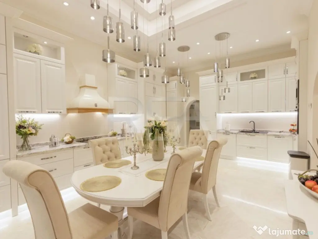 R.E.A. Imobiliare are placerea de a va prezenta spre vanzare o vila in stil mediteranean in zona langa padurea Băneasa, isi asteapta noii proprietari intr-un decor de poveste. Casa se remarca prin aspectul elegant si prin atentia la detalii cu care a fost construita. Finisajele sale, de inalta calitate, aduc un confort sporit, pus la dispozitie nu doar de amplul spatiu locativ, ci si de piscina exterioara, foisor, spatiile de parcare si curtea generoasa, amenajata de un peisagist. Exteriorul sau, cu acoperis din tigla ceramica si suprafete vitrate extrem de generoase, aminteste de vilele clasice toscane, sporindu-i farmecul. Vila dispune de toate utilitatile necesare unui nivel de confort sporit, beneficiind de curent trifazic, gaz, apa, canalizare, cat si de centrala termica, incalzire in pardoseala, camere video, sistem de alarma, telecomanda poarta acces auto. In jurul proprietatii se gaseste o frumoasa padure si alte vile. Zona nu este aglomerata, ci ofera tot confortul necesar traiului linistit al unei familii care nu doreste sa locuiasca in mijlocul agitatiei citadine. Este locul in care copiii dvs. pot creste in voie, in care puteti organiza adunari de familie, petreceri cu prietenii, langa piscina, ori unde puteti organiza propriul spatiu de lucru, acasa. Aceasta casa va pune la dispozitie tot necesarul realizarii acestor dorinte, singura dvs. limitare fiind propria imaginatie. Informatiile tehnice au caracter orientativ, acestea fiind preluate de la proprietari, pentru a va face o idee mai clara in privinta Vilei, va invit la vizionare. Proprietatea a fost verificata si este valabila, confirmarea fiind facuta, atat timp cat este la promovare. Pentru mai multe detalii si vizionari, ne puteti contacta telefonic, specificand codul de identificare P7477! Cu deosebita consideratie, Echipa R.E.A Imobiliare. Your comfort it's our Job. Id intern: P7477 Număr niveluri imobil: 1 Număr Băi: 3 Nr. locuri parcare: 2 Curent Apă Canalizare Gaz Sistem irigaţie Climă