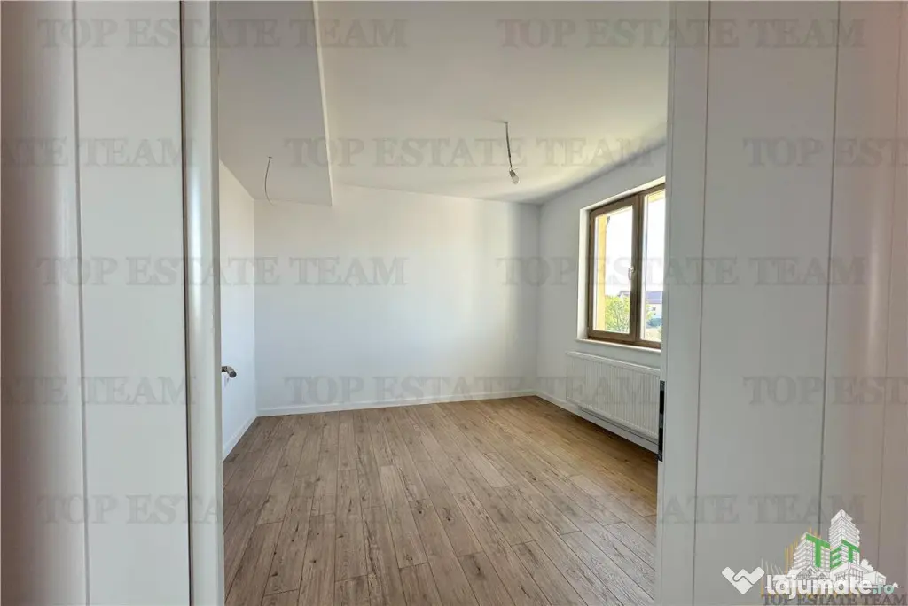 Compartimentare: living, bucatarie inchisa, hol, dormitor, baie de servici cu dus, camera tehnica, spatiu de depozitare, casa scarii. La etaj se afla un dormitor matrimonial cu baie proprie si alte 2 dormitoare cu dresinguri si baie pe hol. Pod inalt peste 2metri pentru depozitare.