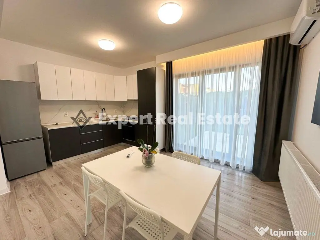 Casa este in regim P+1, finalizata in anul 2021 si se preda spre inchiriere complet mobilata si utilata. Se preteaza pentru un cuplu sau o familie moderna, avand in imediata apropiere toate facilitatile necesare.. Vila se afla la prima inchiriere si este compartimentata astfel: parter compus din living cu iesire in terasa, loc de dinning, bucatarie complet utilata si mobilata, 1 baie cu cabina de dus, 1 camera de depozitare, iar la etajul 1 regasim 2 dormitoare si 1 baie, iar unul dintre dormitoare are iesire in balcon. Atat cele doua dormitoare cat si livingul dispun de aer conditionat. TV-ul din living urmeaza a fi montat.