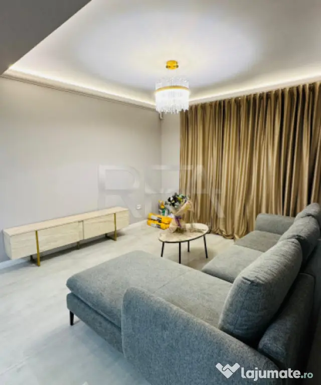 Curte: 50 m², în curs de amenajare, cu pavele și pietriș, plus o zonă verde cu gazon și sistem de irigație.