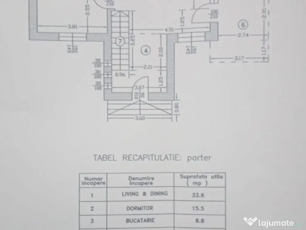 Parter: dormitor,baie,living și bucătărie închisă.