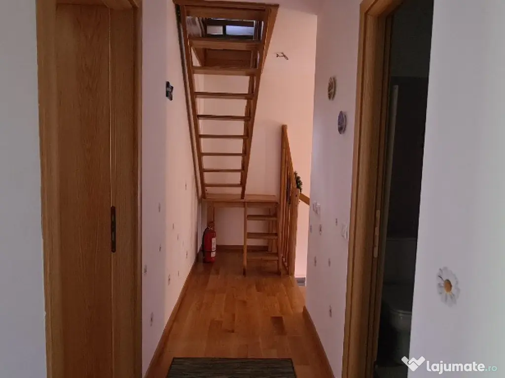 - Parter open-space cu living generos, șemineu, bucătărie complet echipată, baie de serviciu și spațiu de depozitare.