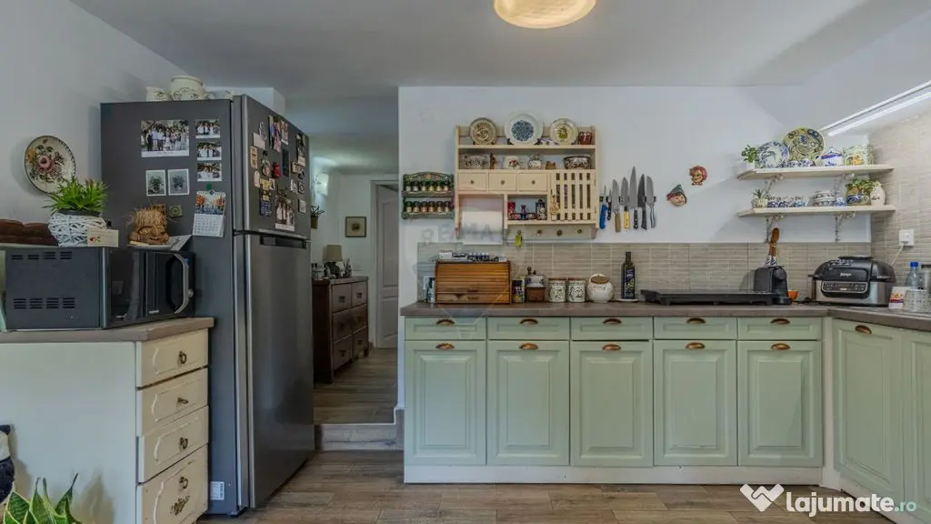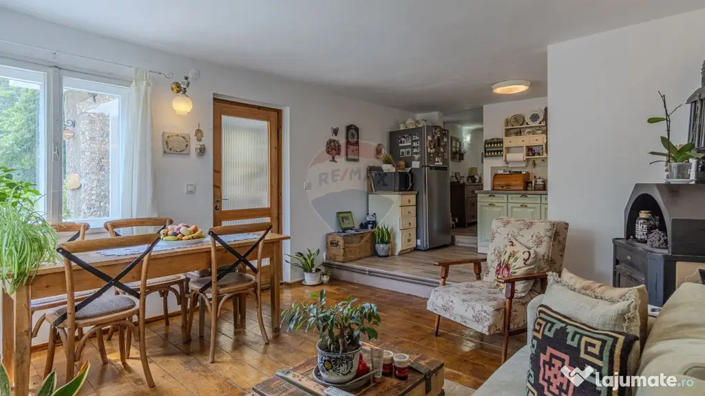 -Exista in caz de avarie la gaz si varianta de a incalzi proprietatea cu lemne prin semineul de la parter si soba de la etajul 1 total functionale.
