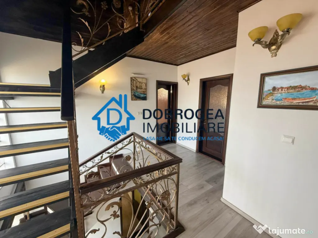Dobrogea Imobiliare va prezinta spre vanzare o vila D+P+E+M in zona Alexandru Cel Bun. Situată într-o zonă liniştită , această vilă modernă reprezintă alegerea ideală pentru o familie care îşi doreşte un stil de viaţă confortabil şi elegant, într-un cadru natural. , Clădirea se întinde pe un teren de 209 mp, cu o amprentă la sol de 83, 12 mp și o suprafață totală desfășurată de 275 mp, finalizată în anul 2021, construită din cărămidă. Vila este structurată pe: demisol, parter, etaj şi mansarda, iar fiecare nivel a fost gândit pentru a răspunde nevoilor unei familii moderne. - la demisol se afla un garaj spatios, sauna, 2 camere. - la parter se află un living amplu, împărţit ingenios în trei zone: o zonă de primire cu bibliotecă şi dressing realizate pe comandă, o zonă de relaxare cu Smart TV extra-large, perfectă pentru întreaga familie, şi o zonă de dining cu bucătărie inchisa, ideală pentru cine relaxante sau întâlniri cu prietenii, completată de draperii din catifea care adaugă o notă de rafinament si un dormitor cu baie proprie. - etajul cuprinde trei camere, dintre care dormitorul principal beneficiază de baie proprie, un dressing si o baie pe hol care deserveste celelalte 2 dormitoare. Fiecare camera beneficiaza de balcon, respectiv terasa cu o superba priveliste catre mini-delta Zagan. - la mansarda se află un spaţiu generos ce poate fi utilizat ca zona de joacă sau zonă de hobby, fiind dotat cu multiple spaţii de depozitare. Curtea este frumos amenajata cu plante decorative si dispune de un foisor cu barbeque. Incalzirea se realizeaza cu ajutorul centralei proprii cu peleti. Proprietatea se vinde complet mobilata si utilata. Va așteptam la vizionare! Ne puteți vizita la sediul nostru situat pe str. Pacii, nr. 6 (la parterul hotelului Select) pentru consultanta gratuita. Pentru mai multe oferte vizitați site-ul www.Dobrogea-Imobiliare.ro sau pagina https://www.facebook.com/agentia.dobrogea.9 Id intern: P2139 Număr niveluri imobil: 2 Număr Băi: 3 Comision cumpărător: 2% Curent Apă Canalizare Climă