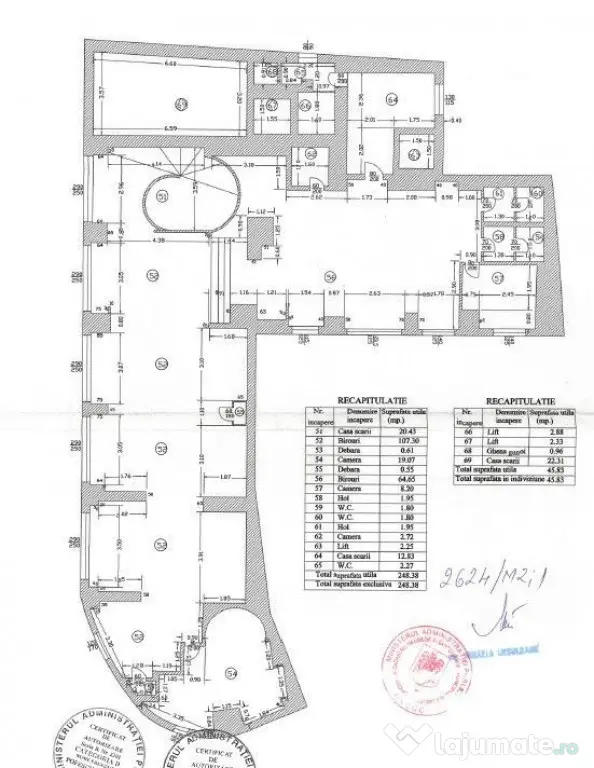 Zona Universitate Batistei mezanin 205 mp pt birouri sau alte activitati . Spatiul are un open space de 106 mp ,2 grupuri sanitare , spatiu bucatarie si 3 camere separate.Imobilul este construit in anul 1996 .
