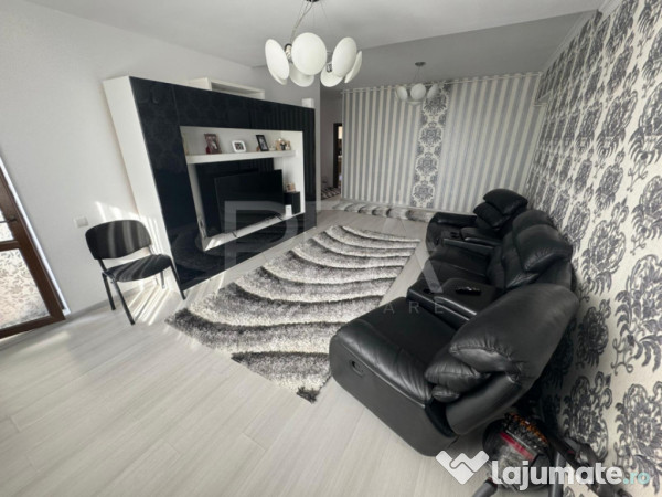 Apartamentul impresionează printr-un design modern și funcțional, cu mobilier de calitate și multiple spații de depozitare.