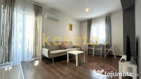 Se află la etajul 7 din 10 și are orientare sud-vest, ceea ce asigură lumină naturală pe parcursul zilei. Compartimentarea este eficientă: living open space cu bucătărie, dormitor separat și baie cu geam pentru aerisire naturală – un detaliu care contează în utilizarea zilnică.
