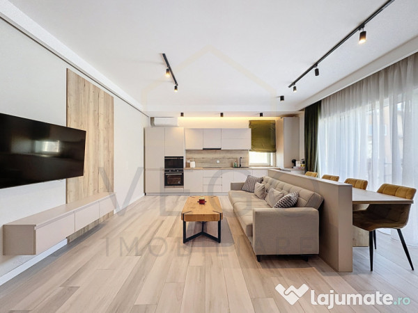 Locuința se desfășoară pe o suprafață utilă de 50 mp + o terasă de 6 mp, finisajele sunt moderne, de înaltă calitate, se închiriază complet mobilată și utilată, inclusiv cu mașină de spălat vase, în rândul dotărilor menționăm pardoseala cu parchet laminat, ferestre termoizolante cu tâmplărie PVC, uși interioare din lemn și ușă metalică antiefracție la intrare, iar confortul termic este asigurat pe tot parcursul anului de centrala termică individuală cu sistem de încălzire prin pardoseală și aparatul de aer condiționat.
