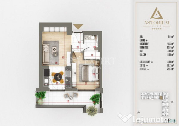 Suprafata utila – 40.27 mp utili +11.75 mp balcon, total 52.02 mp utili
