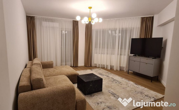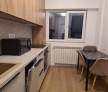 Apartamentul este dotat cu aer condiționat, 2 x smart TV Samsung de 138 cm și 108 cm, mașină de spălat rufe, mașină de spălat vase, plita și cuptor electric, cuptor cu microunde, hota cu evacuare exterioara, mobilier la comandă