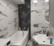 Baie elegantă cu finisaje în stil marmorat + mașină de spălat