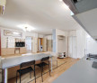 Living cu bucătărie open-space, zonă luminoasă și bine aerisită