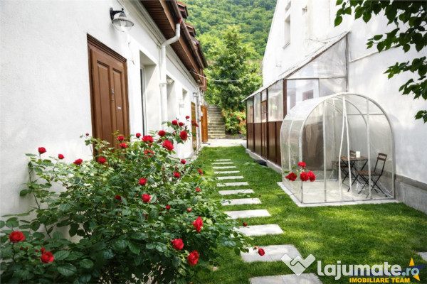 Imobilul are o suprafata utila de aproximativ 240 mp si este compartimentat in trei unitati locative distincte: un apartament cu 3 camere, un apartament cu 2 camere si o garsoniera, fiecare amenajata complet, mobilata si utilata la standard de 4 stele. Proprietatea este cotata cu nota 9,6 pe Booking.com, avand deja un istoric solid si confirmat in regim hotelier, ceea ce permite preluarea imediata ca afacere functionala sau utilizarea ca resedinta privata, in functie de dorinta noului proprietar.