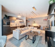 Compartimentarea este semidecomandată, astfel: 1 cameră de zi + 1 bucătărie open-space, 2 dormitoare, 2 băi, 1 balcon, 1 hol.