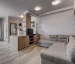 Zona de zi a apartamentului este formata dintr-un living spatios, cu ferestre mari si luminoase, o bucatarie inchisa complet dotata si o terasa unde va puteti petrece timpul alaturi de cei dragi. Urmeaza dormitorul matrimonial prevazut cu baie matrimoniala, un al doilea dormitor si a doua baie la fel de generoasa. Dupa cum se poate observa si in poze, apartamentul este prevazut cu numeroase spatii de depozitare si filtru cu osmoza pentru apa potabila.