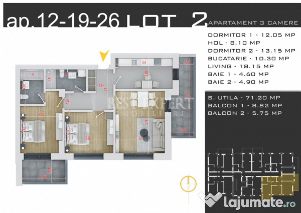 Suprafata utila - 71.21 mp utili +14.56 mp balcon, total 85.77 mp utili