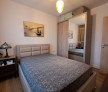 Holul beneficiaza de un dressing, bucataria inchisa este complet mobilata si utilata, dormitoarele sunt mobilate modern (dormitorul matrimonial dispune de baie proprie si dressing), living-ul luminos are acces spre terasa, iar cele 2 bai sunt finisate premium.