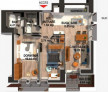 Locuinta este alcatuita din două dormitoare, un living cu o bucatarie open-space, două băi, un hol, o debara și un balcon.