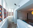 Apartamentul de 3 camere beneficiaza de 2 bai (ambele cu dus) si balcon integrat in spatiu de living.