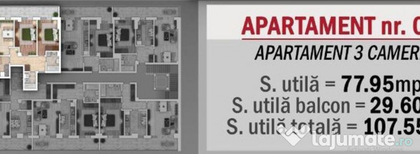Apartament compus din 3 camere si dependinte, total decomandat, oferind spatii generoase pe fiecare zona ce defineste compartimentarea acestuia.