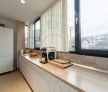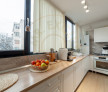 Compartimentarea este excelent gândită: zona de zi cuprinde un living amplu, care devine punctul central al casei, și o bucătărie mutată elegant pe balcon, configurată practic pentru zona de gătit.