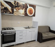 Este open space, are centrala, AC, tv, masina de spalat, aragaz ,frigider. In dormitor este pat dublu, in living canapea extensibila.