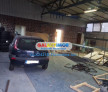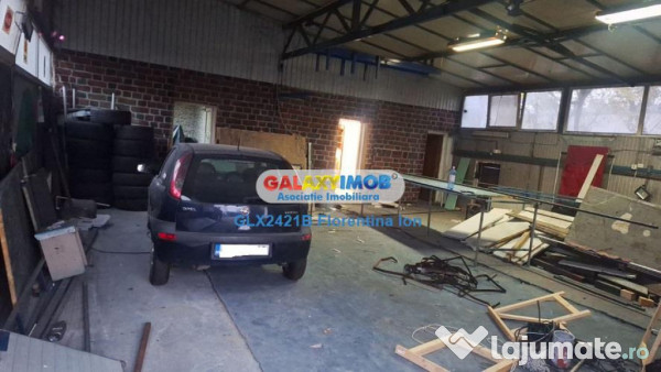 Eate vorba de doua terenuri lipite unul de 250mp si unul de 320mp. deschiderea este de 19mp care se vand impreuna. Pe terenul de 320mp exista o hala din panouri tip sandwich si o parte caramida. In aceasta hala exista spatii de birouri si grup sanitar precum si un spatiu de 90mp compartimentat in 3 dormitoare o bucatarie si 3 bai , spatii ce sunt inchiriate pentru cazare muncitori( numar total paturi 21) Incalzirea se realizeaza cu centrala termica. Hala este racordata la gaze, apa si canalizare,curent trifazic, cablu si internet.