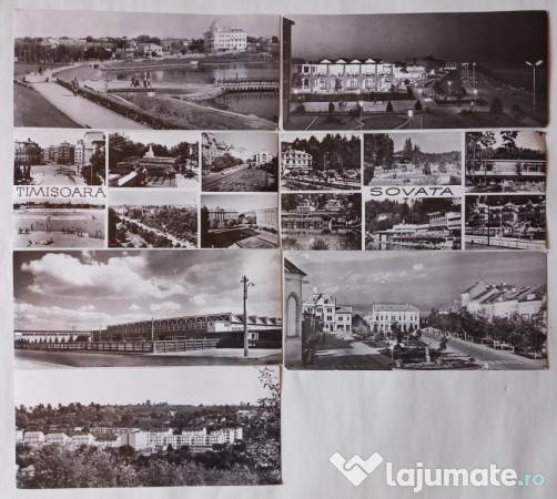 7 cărți poștale alb/negru RPR, format 20x9cm, pentru colecționari