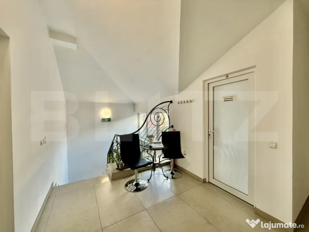 Blitz va prezinta o proprietate unică în cartierul Gruia, ideală pentru investitori sau antreprenori care caută o clădire versatilă, complet utilată și cu randament imediat! Această casă individuală, cu front la 2 străzi (17 m și 22 m), are o suprafață utilă de 550 mp și teren de 200 mp, fiind dispusă pe subsol, parter și etaj. Proprietatea este dotată cu pompă de căldură, panouri fotovoltaice și baterii, oferind eficiență energetică maximă. În prezent, generează 2.500 €/lună din chirii, iar compartimentarea permite împărțirea în 4 unități independente, ideale pentru birouri, clinici, saloane sau spații comerciale. ✔️ Subsol: 3 saloane autorizate ✔️ Parter: sală mare pentru evenimente / activități comerciale ✔️ Etaj: birouri moderne, bucătărie, săli de meeting și balcon ✔️ Terase și spații exterioare amenajate Se acceptă plata în rate pe 2 ani, în condiții avantajoase. O oportunitate perfectă pentru investiție sigură și cu venit constant, într-o zonă aflată în continuă dezvoltare! Cod ofertă / ID BLITZ: P156674 Id intern: P156674 Număr niveluri imobil: 1 Număr Băi: 7 Curent Apă Canalizare Gaz Climă