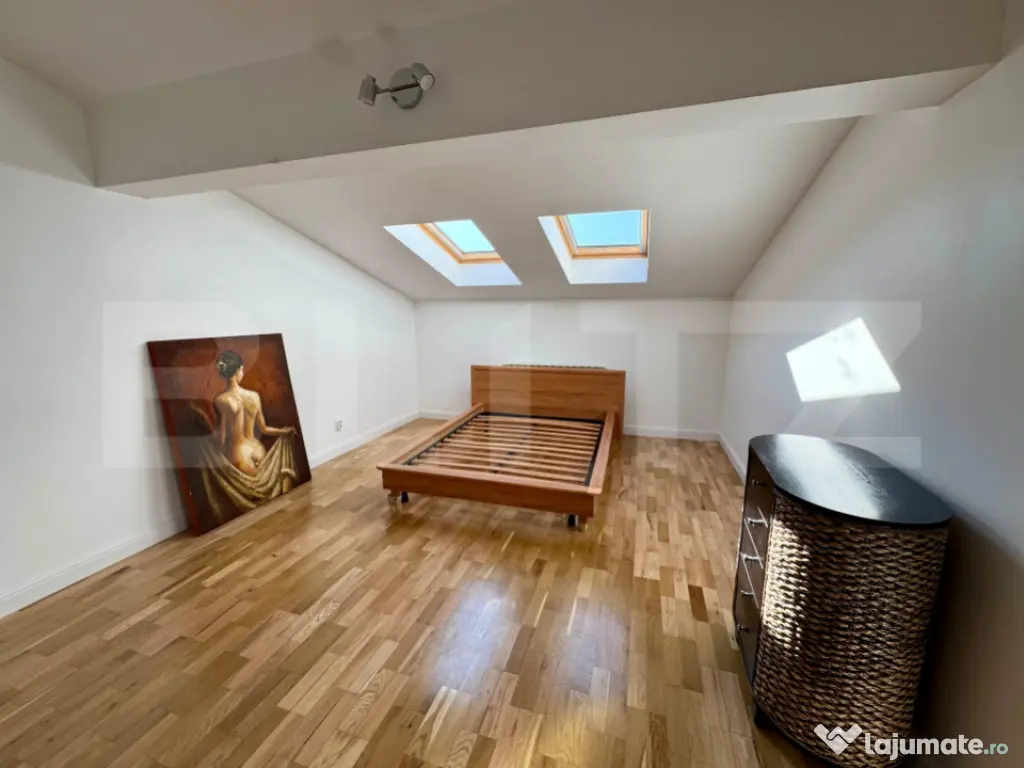 Într-una dintre cele mai apreciate zone rezidențiale, Andrei Mureșanu, vă propunem spre închiriere un duplex deosebit, modern și elegant, cu o suprafață generoasă de aproximativ 400 mp, ideal pentru cei care își doresc confort, spațiu și discreție. Proprietatea impresionează prin volumul spațiilor, compartimentarea eficientă și atmosfera contemporană, fiind recent renovată și pregătită pentru noii chiriași. Locuința dispune de 8 camere, dintre care 5 dormitoare, oferind multiple posibilități de amenajare pentru locuire sau activități de reprezentare. La nivelul inferior se regăsesc spații dedicate relaxării și funcționalității, inclusiv o zonă amenajată pentru antrenament, completată de spații tehnice. Casa este parțial mobilată cu mobilier nou, iar în funcție de preferințele chiriașilor mobilierul poate fi adaptat – adăugat sau retras. Proprietatea beneficiază și de garaj, iar designul modern și spațiile generoase creează o locuință care îmbină perfect confortul cu eleganța. Această proprietate este genul de locuință care merită descoperită la fața locului. Cod ofertă / ID BLITZ: P166396 Id intern: P166396 Număr niveluri imobil: 3 Număr Băi: 3 Nr. locuri parcare: 2 Curent Apă Gaz