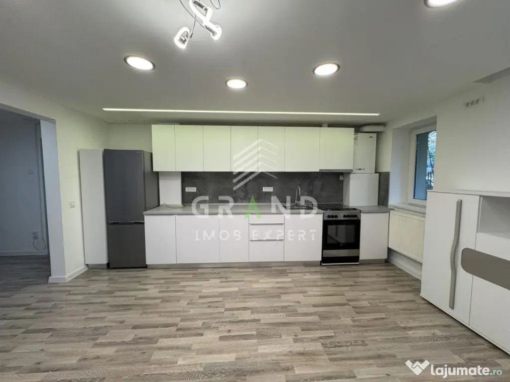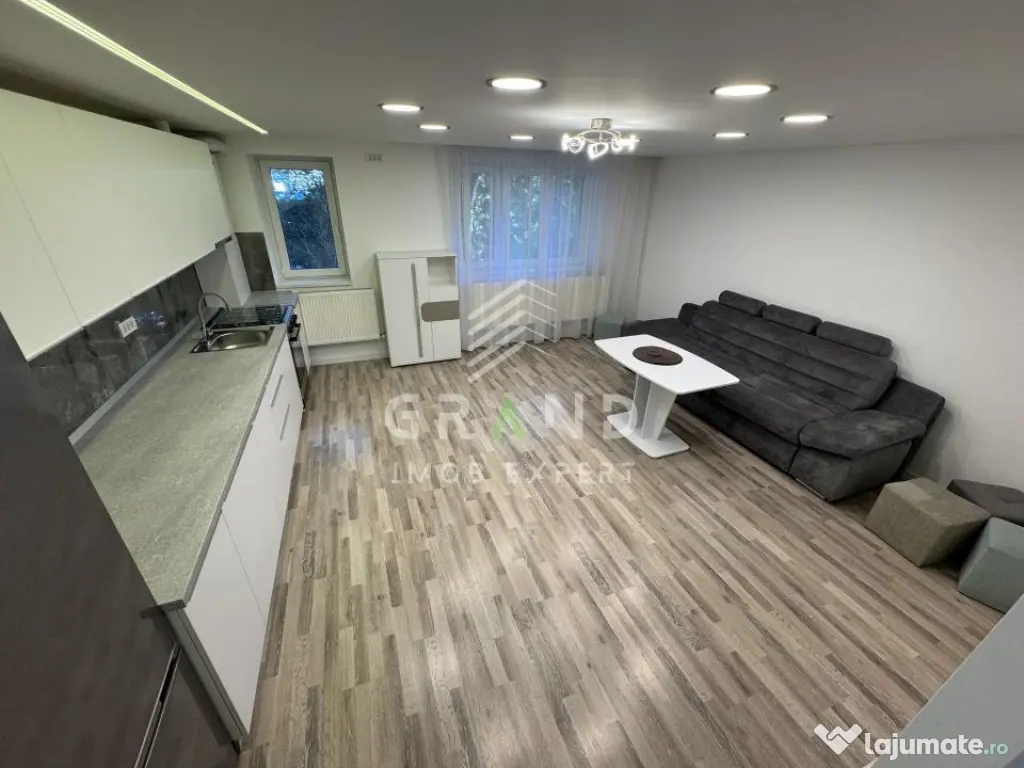 • Living open-space cu canapea extensibilă + bucătărie mobilată și utilată