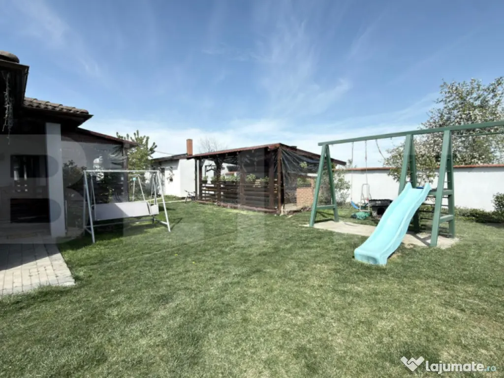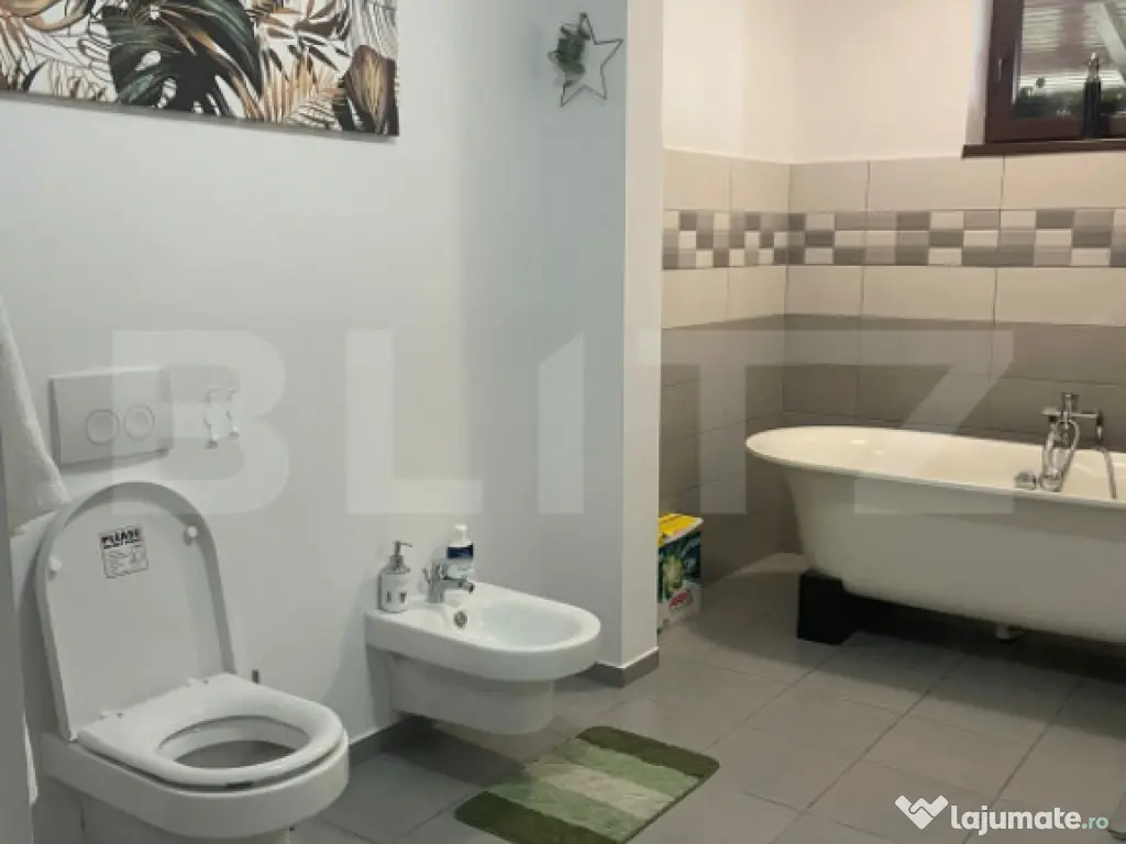 Vă propunem spre vânzare o proprietate deosebită situată în Vetiș, în zona nouă de case din apropierea zonei industriale / cameră rovinietă, la doar 5 km de oras. Locația este ideală pentru cei care își doresc liniște, fiind poziționată la câteva zeci de metri de șosea, ferită de zgomotul traficului auto. ???? Suprafață teren: 11 ari ???? Regim de înălțime: S+P ???? Compartimentare: ???? Subsol (40 mp): 3 încăperi – ideale pentru depozitare / hobby / cramă ???? Parter: Living spațios (dotat cu aer condiționat) Bucătărie cu zonă de luat masa 3 dormitoare (unul cu baie proprie și dressing) 1 baie suplimentară Terasă exterioară de 15 mp ???? Exterior & facilități: Curte amenajată cu gazon și sistem de irigație Alee pavată – loc pentru 2-3 autoturisme Gard din bolțari de beton cu elemente din fier Trotuar pavat în jurul casei – protecție suplimentară pentru fundație ???? Construcție anexă: Cameră tehnică (2 centrale: gaz + lemne) Spațiu de depozitare Baie exterioară Terasă acoperită de 25 mp cu barbeque zidit ???? Dotări & avantaje: Izolație exterioară de 10 cm Acoperiș din țiglă Geamuri cu jaluzele Sistem de încălzire mixt (gaz + lemne) Proprietate bine întreținută, pregătită pentru mutare ✨ Un cămin ideal pentru familie, ce îmbină confortul modern cu liniștea unei zone retrase, dar aproape de oraș. ???? Pentru mai multe informații sau pentru programarea unei vizionări, vă stăm la dispoziție! Cod ofertă / ID BLITZ: P170299 Id intern: P170299 Număr Băi: 3 Nr. locuri parcare: 5 Curent Apă Canalizare Gaz Climă